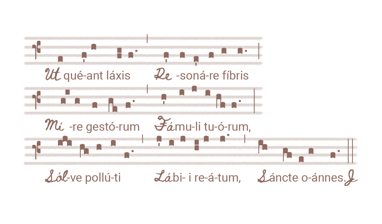 De las primeras sílabas de los versos de este himno se toma el nombre de las notas musicales de la notación latina moderna.
